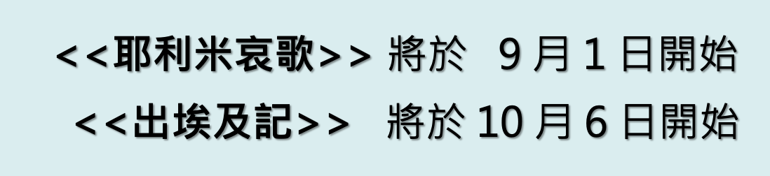 | 主日學 | 逢主日早上10:15-11:15 | 創世記(第一季) |